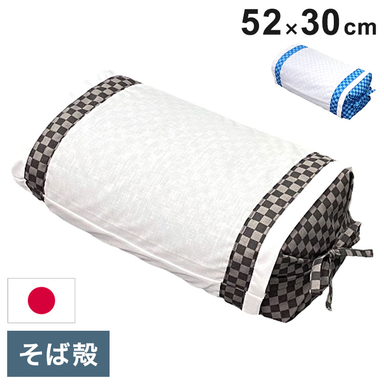 MORIPiLO そばがら 枕 日本製 硬め 市松チェック 高さ調整 そば殻 まくら 枕カバー付き 約30x52cm 寝具 ベット 布団 睡眠 安眠 快眠 クッション 硬め 代引不可