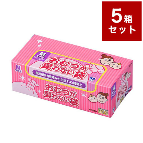 5個セット おむつが臭わない袋 BOS ベビー Mサイズ 90枚入り 箱型 クリロン化成 ボス