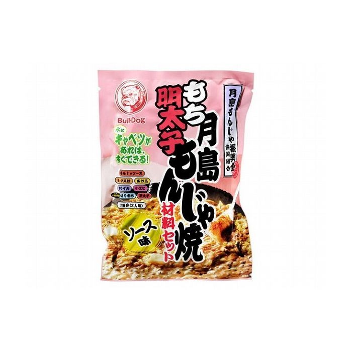 月島もんじゃソース(ウスターソース)、野菜・果実(トマト・たまねぎ・プルーン・にんじん・りんご)、醸造酢、糖類(砂糖・ぶどう糖果糖液糖)、食塩、たん白加水分解物、香辛料、煮干エキス、カラメル色素、あげ玉(植物油脂・小麦粉・澱粉・醤油・食塩・イカエキス・酸化 防止剤(カテキン)・調味料(アミノ酸等)、もんじゃ焼ミックス粉(小麦粉・澱粉・砂糖・食塩・膨張剤)調味料(アミノ酸等)、切りもち(国内産水稲もち米)、明太子加工品(たらこ・食塩・植物油脂・乳糖・コチュジャン調味料・魚醤・唐辛子・澱粉・調味料(アミノ酸等)・紅麹色素・酸化 防止剤(ビタミンE))、切りイカ、小エビ