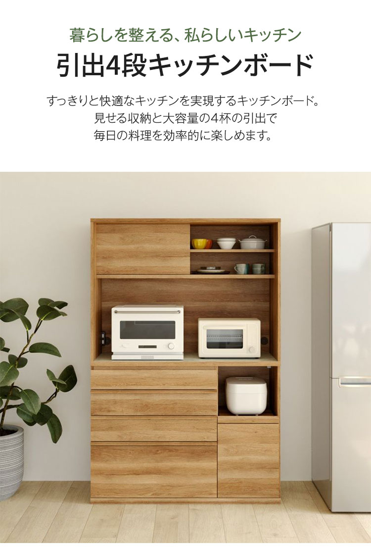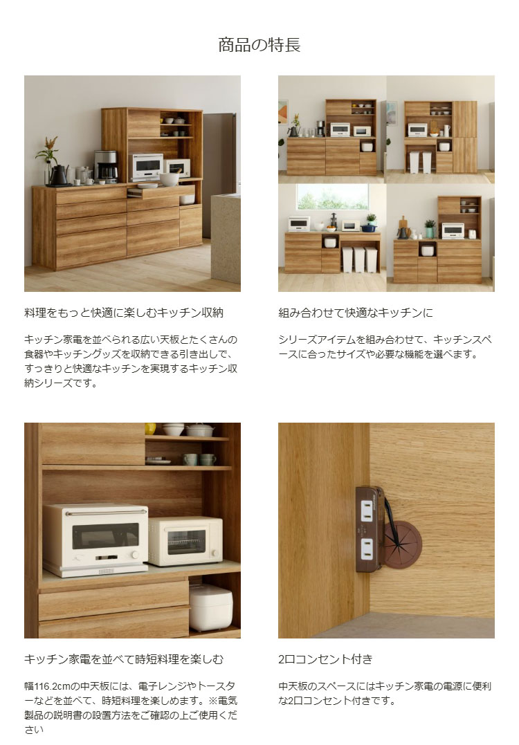 キッチンボード 食器棚 レンジ台 幅120cm 高さ180cm ナチュラルブラウン コンセント付 メラミン天板 キッチン 家電 収納 コモピア 代引不可