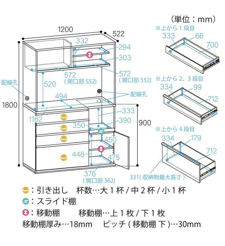 サイズ:幅120.0×奥行52.2×高さ180.0(cm)