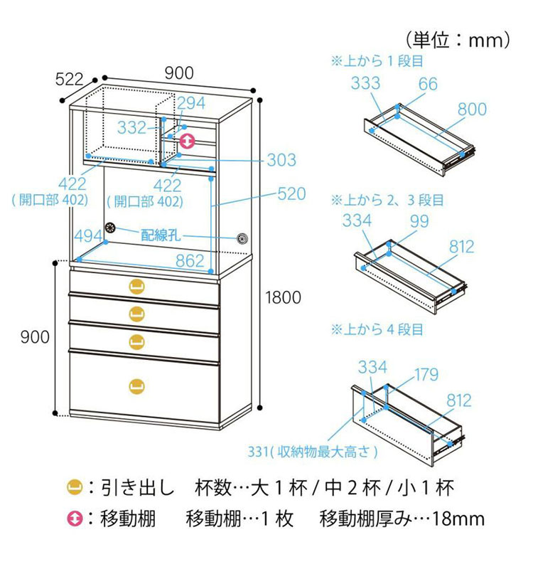 サイズ:幅90.0×奥行52.2×高さ180.0(cm)