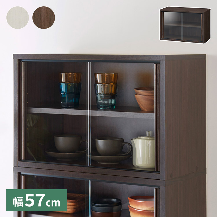 白井産業 食器棚 ミニ 幅57cm 高さ38cm ニカップボード ガラス引き戸 組み合わせて使える キッチン 代引不可