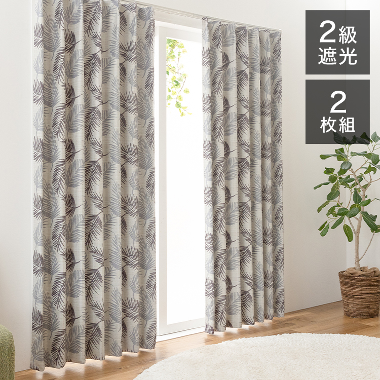 2級遮光 カーテン リーフ柄 2枚組 幅100 丈135 178 200 おしゃれ 北欧 リーフ柄 葉っぱ シック ブラック かっこいい カーテン ドレープカーテン 代引不可