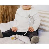 ストラップの先端に付いたループにおしゃぶりや歯固めなどを結び、もう片方の先端についたクリップをお子様のお洋服やブランケット、ベビーカーなどに留めて使います。