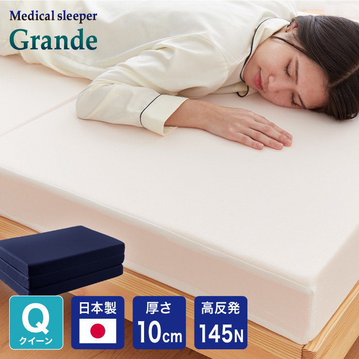 マットレス 日本製 メディカルスリーパー グランデ クイーン 三つ折り 折りたたみ 硬め 極厚 高反発 国産 ウレタン ニット 体圧分散 145N 代引不可
