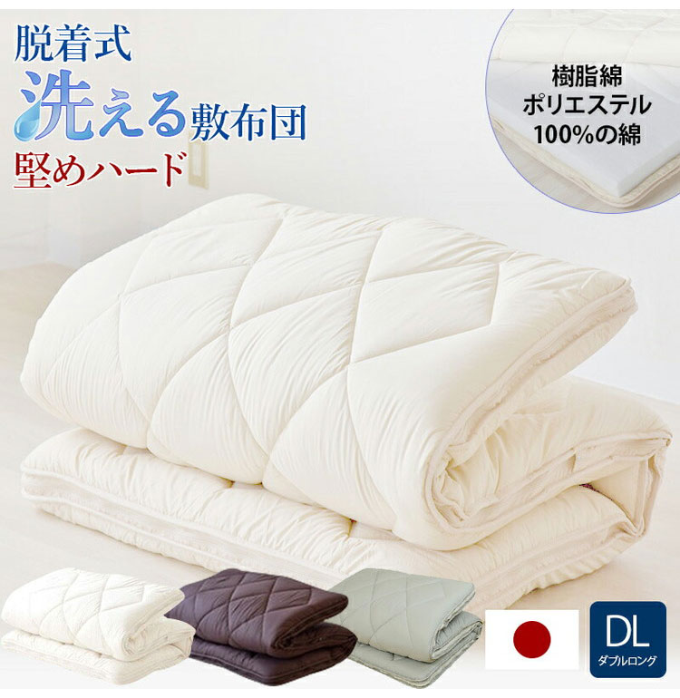 洗える敷布団 日本製 脱着式 3層敷布団 厚さ10cm ダブル ダブルロング 洗濯可能 着脱式 固綿入り 洗濯機OK 国産 厚みがある 清潔 体圧分散 固綿 代引不可