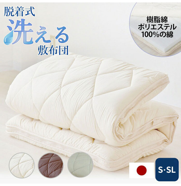 洗える敷布団 日本製 脱着式 3層敷布団 厚み9cm シングル シングルロング 洗濯可能 着脱式 固綿入り 洗濯機OK 国産 厚みがある 清潔 体圧分散 固綿 代引不可