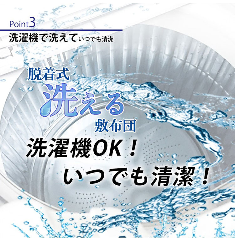 ※ファスナー式で中の固綿を取り出せ、外側は2枚に分かれて洗濯機で洗える(洗濯ネットに入れソフト洗い、掛け干し)