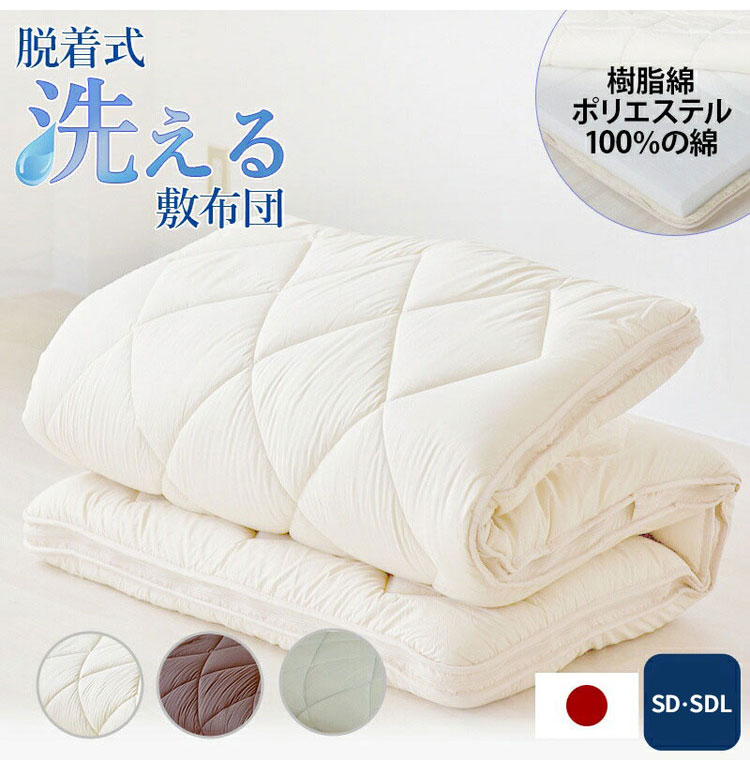 洗える敷布団 日本製 脱着式 3層敷布団 厚み9cm セミダブル セミダブルロング 洗濯可能 着脱式 固綿入り 洗濯機OK 国産 厚みがある 清潔 体圧分散 代引不可