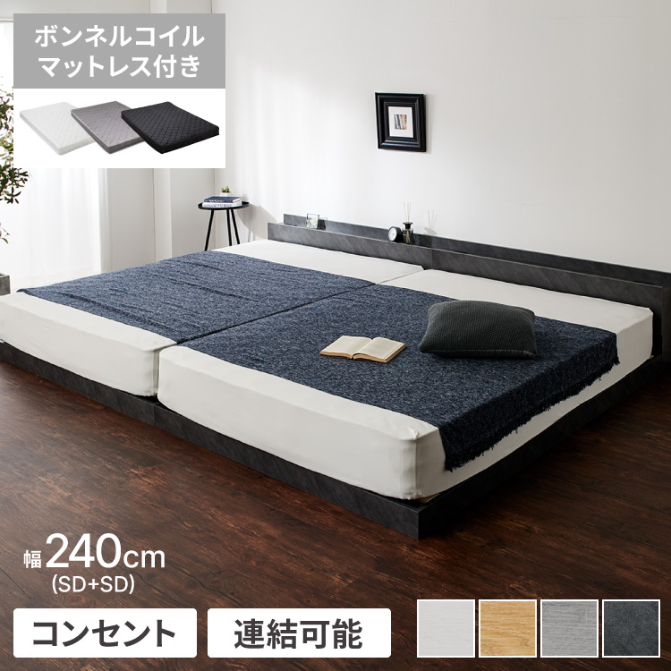 ファミリーベッド ローベッド ワイドキング240 SD+SD ボンネルコイルマットレス ベッド ベッドフレーム 2口コンセント付き 連結ベッド すのこベッド 代引不可