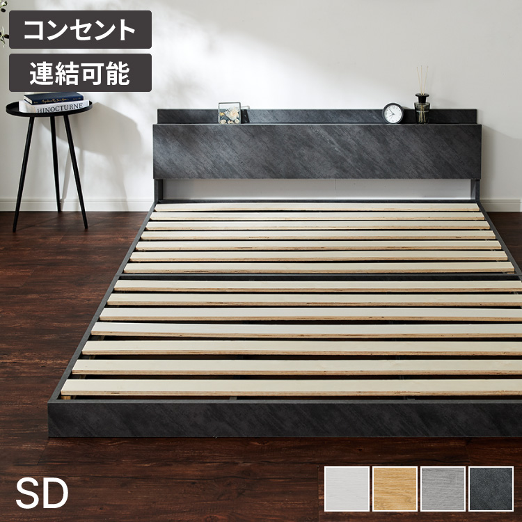 連結金具付き フロアベッド ローベッド セミダブル ベッド ベッドフレーム 2口コンセント付き 連結ベッド すのこベッド 宮棚 ロータイプベッド