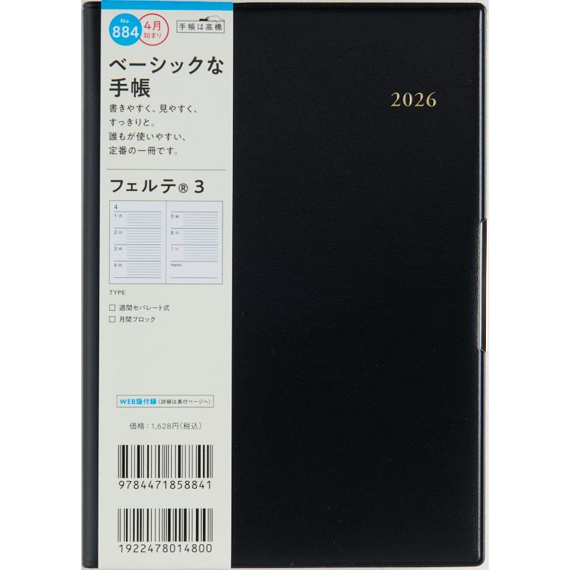 高橋書店 4月始まり ( 884 ) フェルテ3 182×128×14 240g 全国送料無料 郵便受け届
