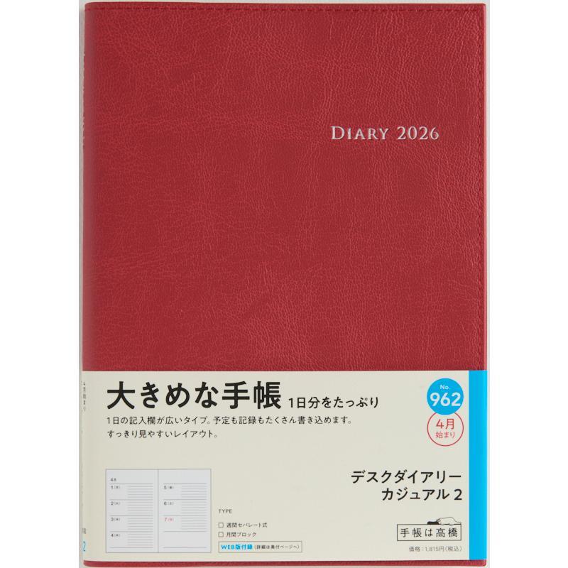 高橋書店 4月始まり ( 962 ) デスクダイアリーカジュアル2 210×148×13 330g 全国送料無料 郵便受け届