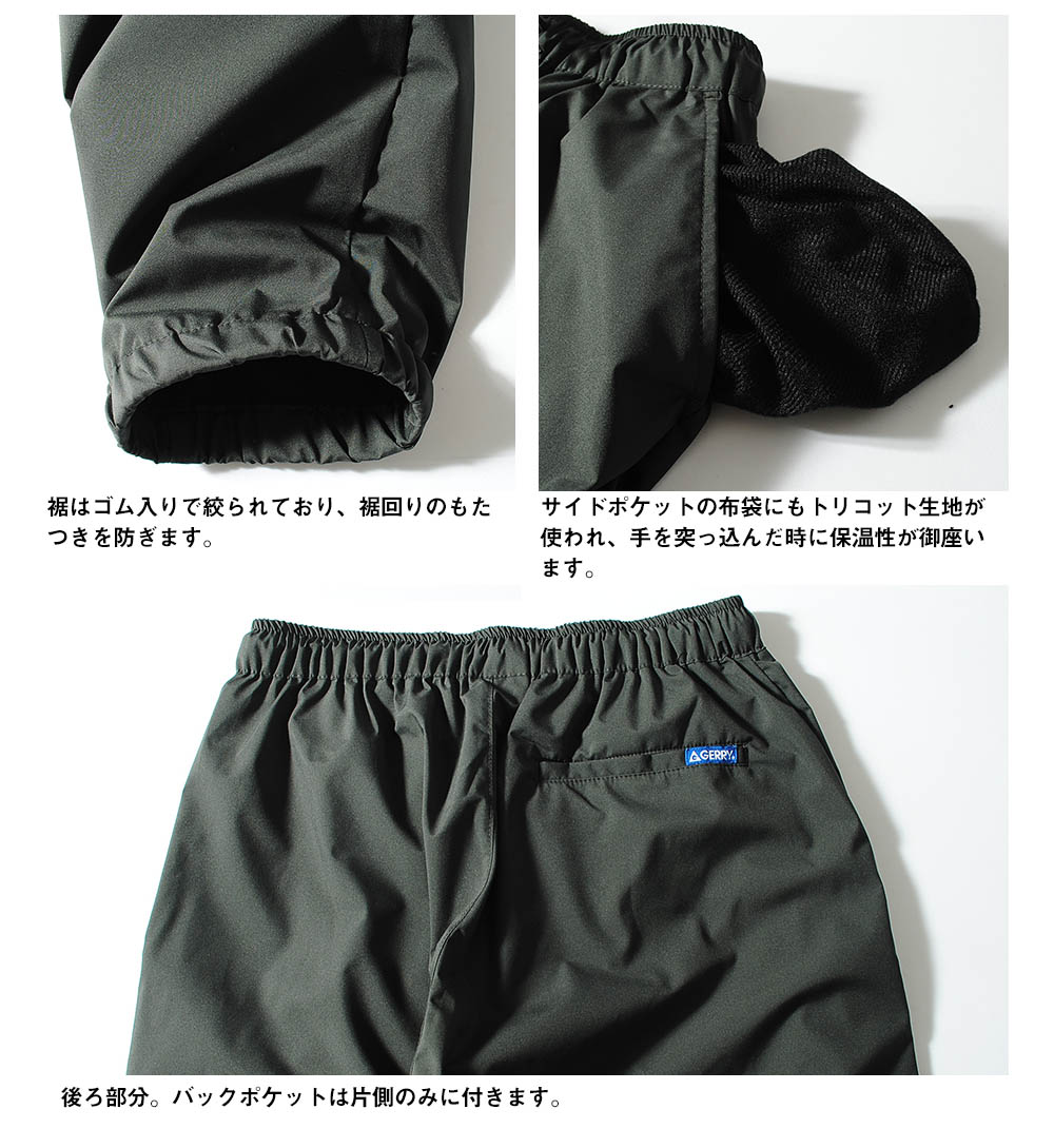 | 商品説明 | GERRY【ジェリー】ストレッチ裏トリコット防風イージージョガーパンツ。冷たい風を遮断する防風仕様と紫外線もカットしてくれるイージーパンツ。裏地は起毛トリコット生地なので優しい穿き心地で保温性にも優れています。タウンユースはもちろん、アウトドアやイベント、フェスなどアクティブなシーンでも活躍してくれます。ウエストの内側にはドローコードが付いているので自分に合ったサイズに調整が可能。伸縮性があり程よく体にフィットしさらりと肌なじみの良い快適な着心地でストレスなく着こなせます。 |