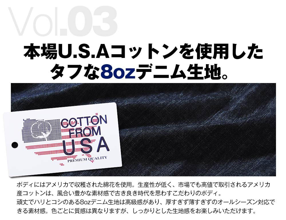 | 商品説明 | USAコットンを使用したシンプルなデニムウエスタンシャツです。 ウエスタンシャツらしいパールドットボタンと、ヨークのデザインは、年間通して着用できるアイテムとして、重宝してくれそうです。 USAコットンのデニムは、適度な厚みときれいな縦落ちが特徴です。 色落ちの違う3色展開で、それぞれ表情の違うカラー展開となっています。 着込んでいくほどに増す風合いを楽しめるおすすめの一着です。 |