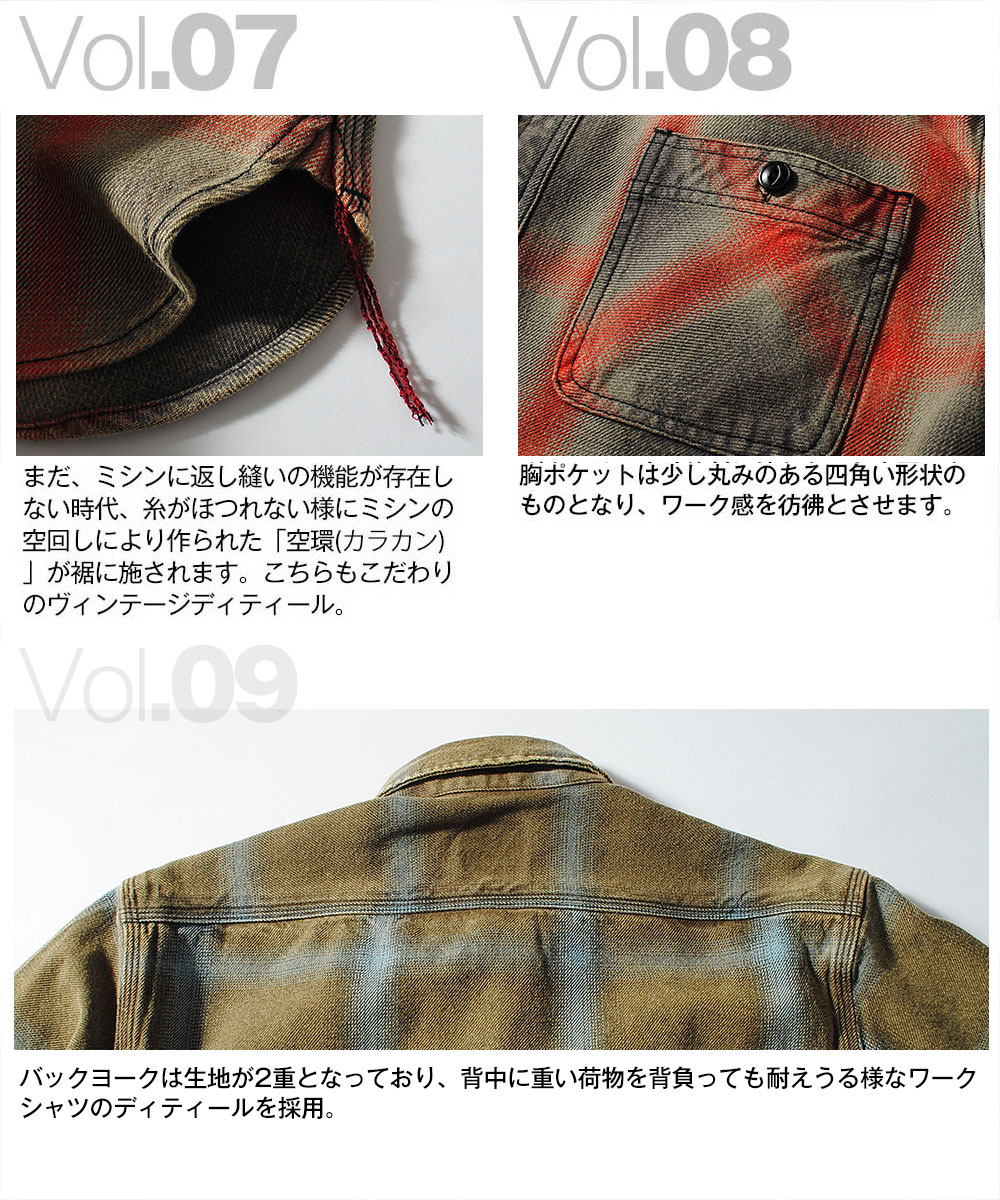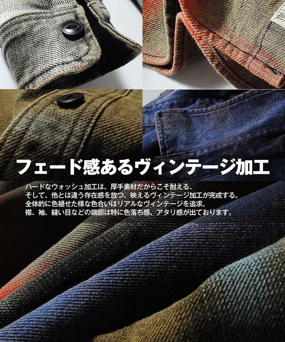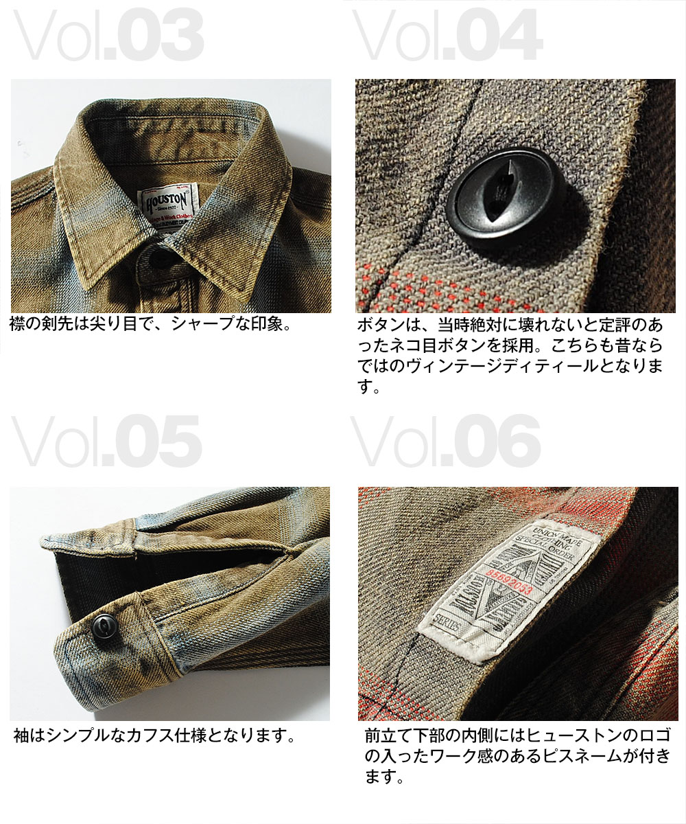 | 商品説明 | HOUSTON / CHECK VIYELLA SHIRT 目の粗い、ざっくりとした風合いのビエラ生地を使用したオンブレチェックシャツ。 生地にはハードなヴィンテージウォッシュ加工を施し、着込んだ古着のような色落ちと奥行きのある表情を演出。新品ながらもこなれた雰囲気を楽しめます。 猫目ボタンや裾サイドの空環仕上げ、前立て裾のブランドタグなど、随所にヴィンテージライクなディテールを配置。肩・背中・サイドには強度の高いトリプルステッチを採用し、タフな作りも魅力です。さらに、ボタンや縫製糸はチェック配色に合わせて選定されており、細部まで妥協のない仕上がり。 シルエットは野暮ったさを抑えた現代的なバランスで、1枚着としてはもちろん、インナーや羽織としてのレイヤードスタイルにもおすすめ。季節を問わず活躍する、完成度の高いチェックシャツです。 |