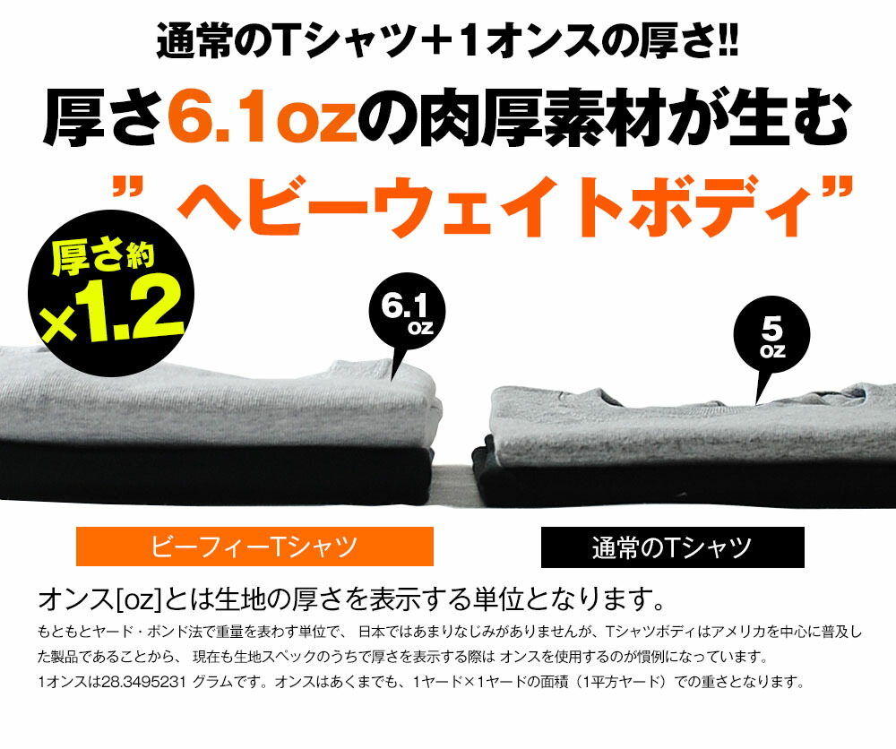 | 商品説明 | ヘビーウェイト(肉厚)生地のため丈夫で長持ち、洗いこんでも首回りが伸びにくく型崩れしない強さ、耐久性があります。 コットン100%の生地を使用し、着心地の良さは抜群。洗えば洗うほど肌に馴染む風合いは、BEEFY-T&®ならではの快適性を発揮します。 縫い目の無い丸胴ボディを採用。アメリカを感じるクラシックなシルエットです。 |