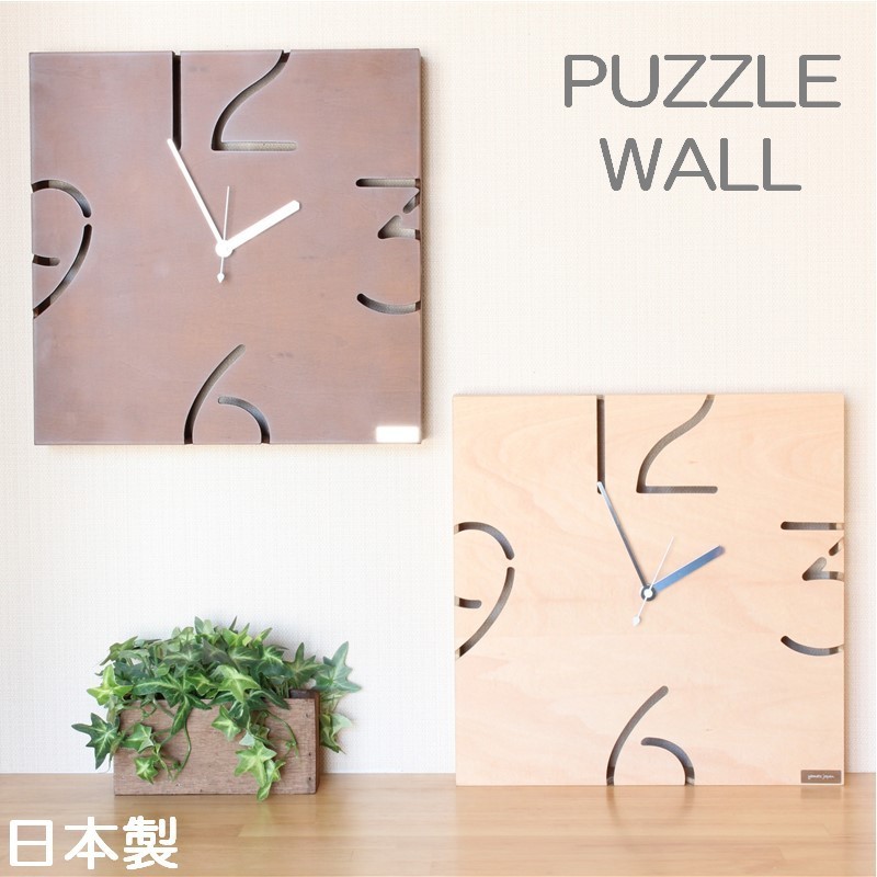 掛け時計 おしゃれ 日本製 国産 壁掛け 北欧 インテリア Clock 壁掛け時計 天然木 木製 木 ハンドメイド 木材 インテリア アート リビング 数字時計 Puzzle W