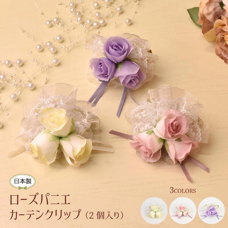 ローズパニエ カーテンクリップ 2個入り 3色より選択 バラ カーテンホルダー カーテン ナプキン クリップ セット インテリア RE01ABN-03