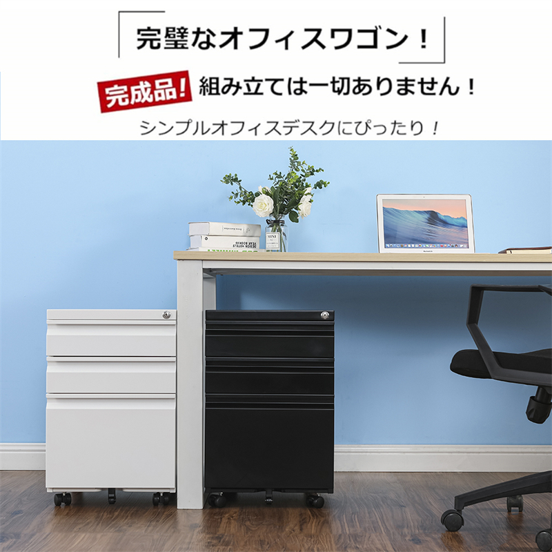 MTLES デスクワゴン オフィスワゴン サイドワゴン 3段オールロック デスクキャビネット 袖机 オフィス家具 組立不要 キャスター付き鍵付き