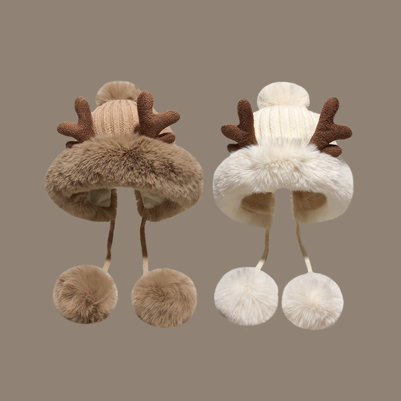 【送料無料】クリスマスぬいぐるみ 帽子 秋冬 新作 ニット帽子 かわいい 暖かい ぼんぼん飾り トナカイ つのデザイン プレゼント こども
