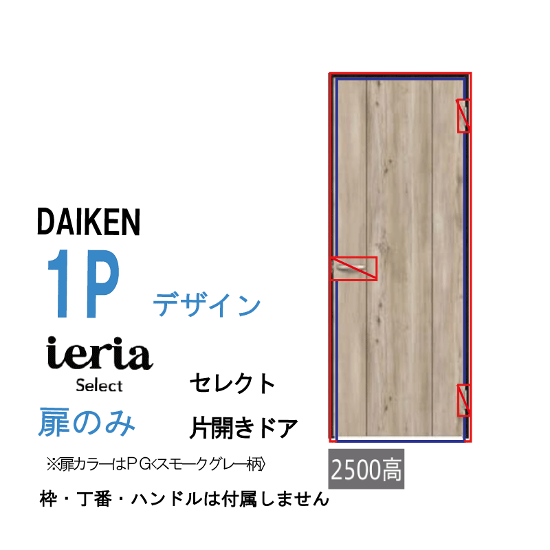 [扉単体]大建工業 ダイケン イエリア ieria 片開きドア セレクト ドアのみ 1Pデザイン 枠なし・ハンドルなし・丁番なし サイズ変更可能!DAIKEN株式会社