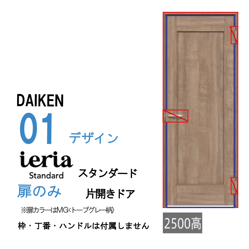 [扉単体] 大建工業 ダイケン イエリア ieria 片開きドア スタンダード ドアのみ 01デザイン 枠なし・ハンドルなし・丁番なし サイズ変更可能!DAIKEN株式会社