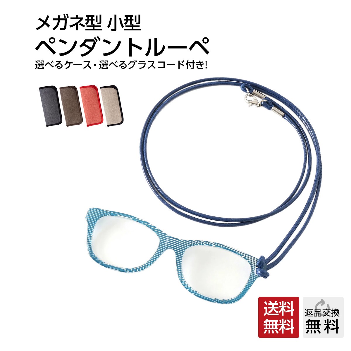 首からかけれる おしゃれなルーペ ペンダントグラス アクセサリー 高級素材アセテート使用 ブルー(PG-003) 紐は全5色