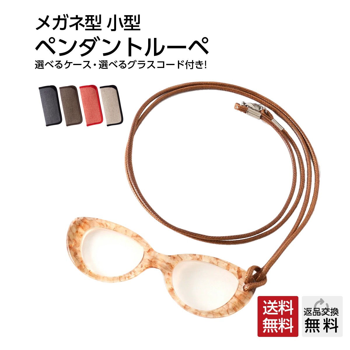 首からかけれる おしゃれなルーペ ペンダントグラス アクセサリー 高級素材アセテート使用 コニャック (PG-004) 紐は全5色