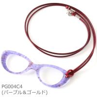 首からかけれる おしゃれなルーペ ペンダントグラス アクセサリー 高級素材アセテート使用 パープル&ゴールド(PG-004) 紐は全5色