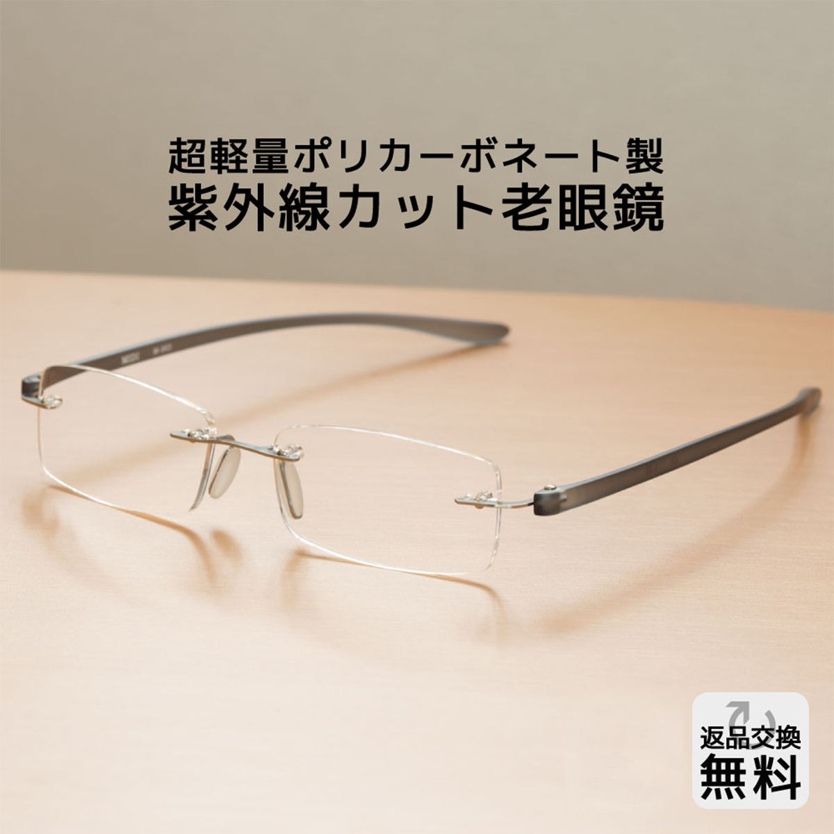 ・お顔の印象を変えないシンプルなフチなし(リムレス・ツーポイント)老眼鏡