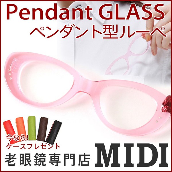 首からかけれる おしゃれなルーペ ペンダントグラス アクセサリー 高級素材アセテート使用 クリアピンク (PG-002) 紐は全5色