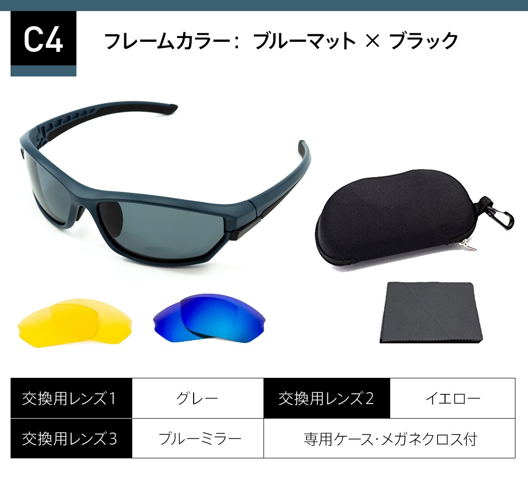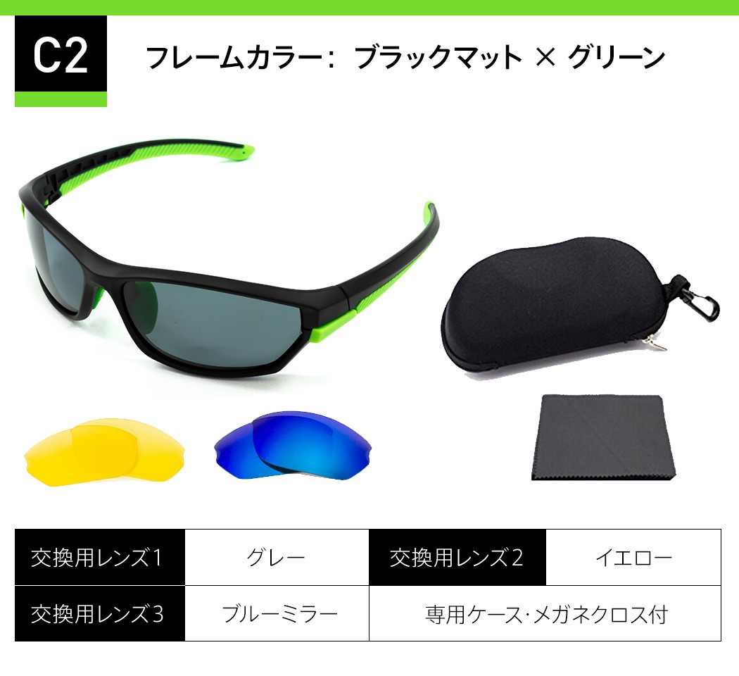 偏光サングラス 3種類の交換レンズ 専用ケース付き