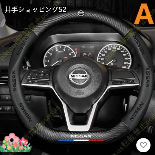 ハンドルカバー 日産 ステアリングホイールカバー カーボン調 内装品 高級 牛革 専車ロゴ 内装品パーツ 滑りにくい 文字付き