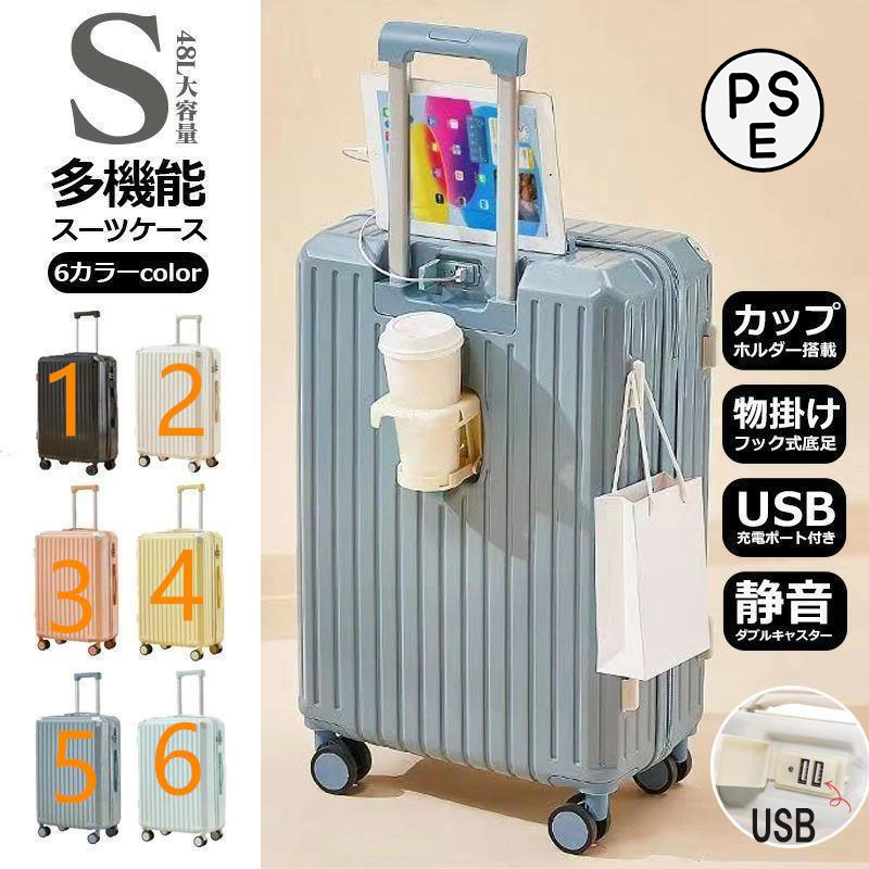 スーツケース 機内持ち込み 軽量 小型 キャリーケース Sサイズ カップホルダー 大容量 ファスナータイプ 静音 おしゃれ かわいい