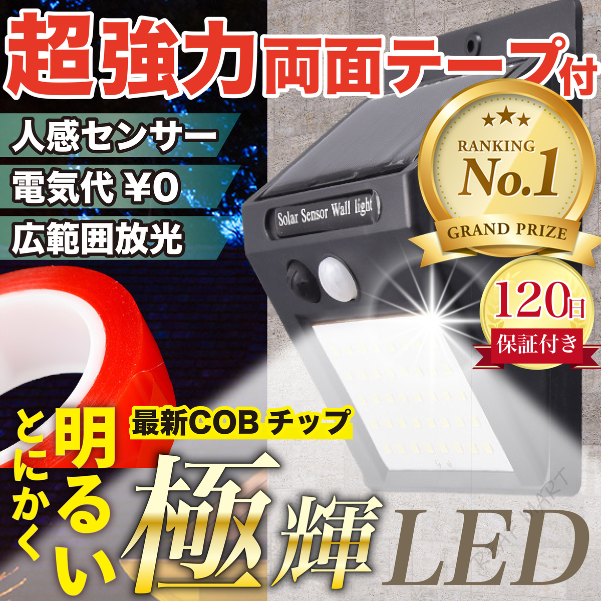 ソーラーライト 屋外 明るい センサーライト ガーデンライト 人感センサー LED ライト ソーラー 自動点灯 防犯 穴あけ不要 幅広両面テープ付