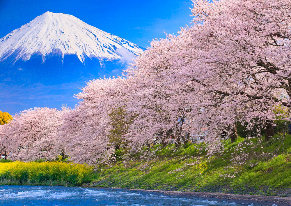 絵画風 壁紙ポスター (はがせるシール式) -地球の撮り方- 龍巌淵(りゅうがんぶち) の桜と富士山 さくら 桜 キャラクロ C-ZJP-009A2(A2版 594mm×420mm)
