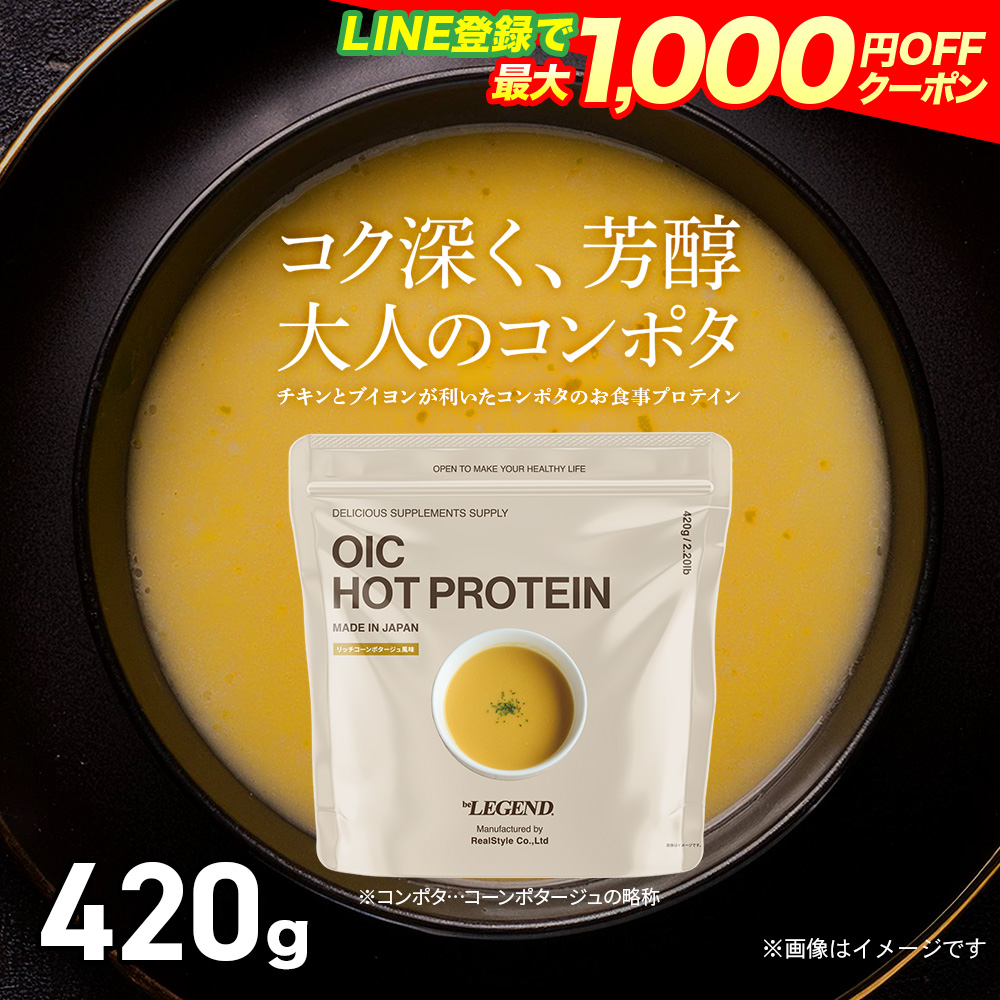 数量限定 LINE新規登録で最大1000円オフ ビーレジェンド OIC MPC HOT プロテイン リッチコーンポタージュ風味 420g ダイエット たんぱく質