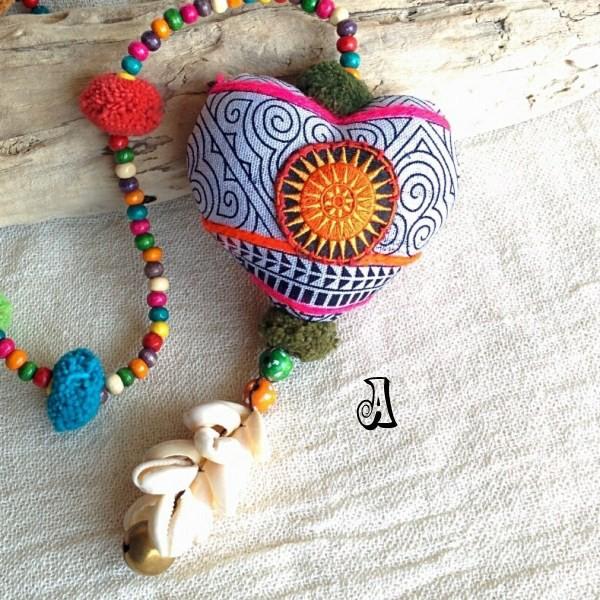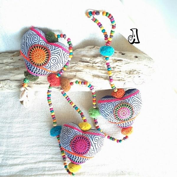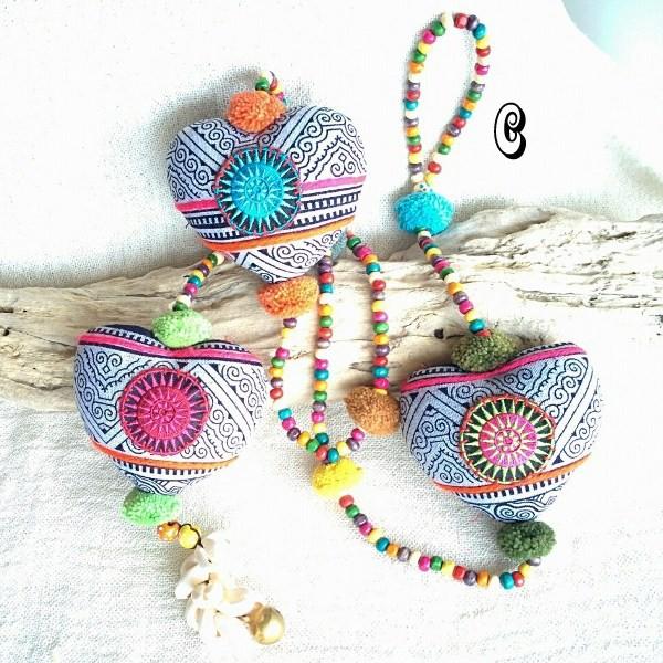 エスニック ハンドメイド オーナメント 民族雑貨 モン族 ハート インテリア小物 ホームデコレーション アジアン