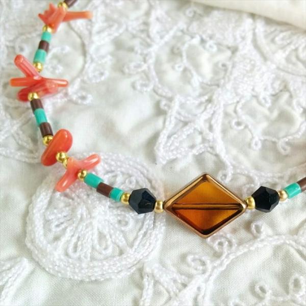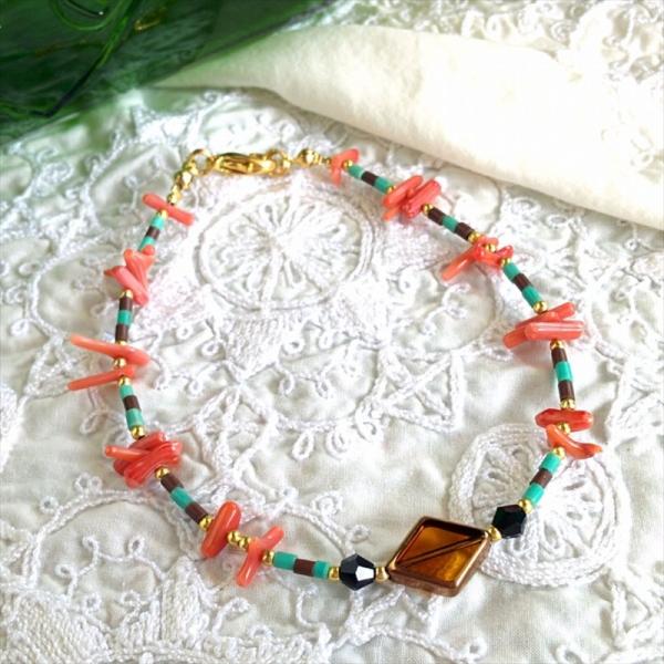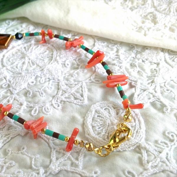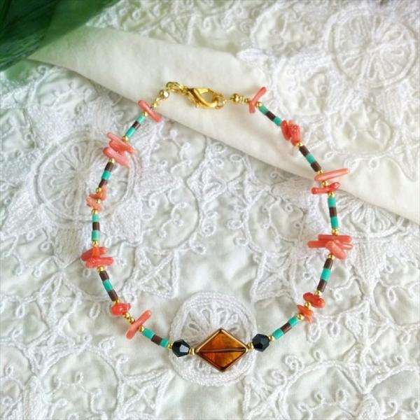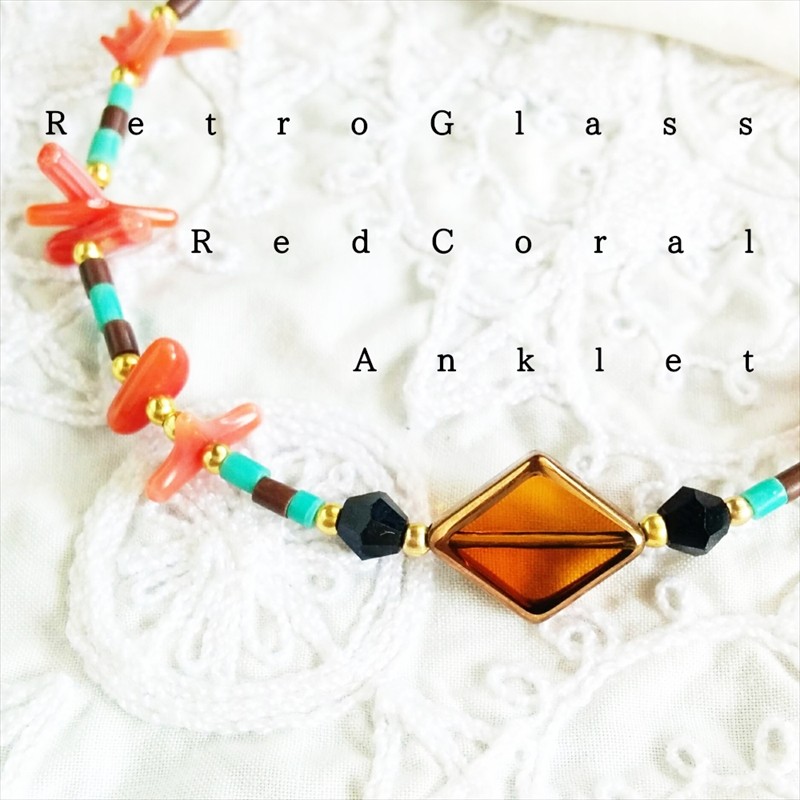 レッドコーラル glass アンクレット realcolorオリジナル ハンドメイド クラフト 天然石 リゾート 海 フェス エスニック レディースアクセサリー