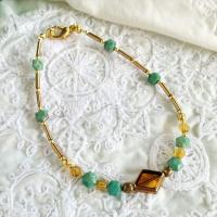 RealColorオリジナルのアンクレット♪アクセント使いのレトロなガラスビーズと、小さなカメみたいな形の-ターコイズ-を使ってハンドメイドした1点です。人気の高いターコイズは、旅(人生)のお守りとしても知られています。ブロンズ色とターコイズグリーンがお洒落な雰囲気♪この夏の足元をナチュラルに飾ってみては?