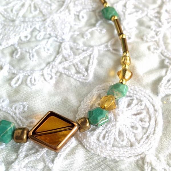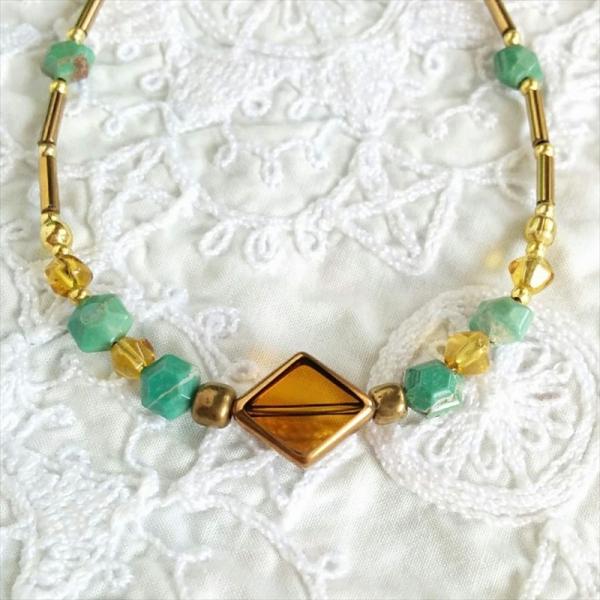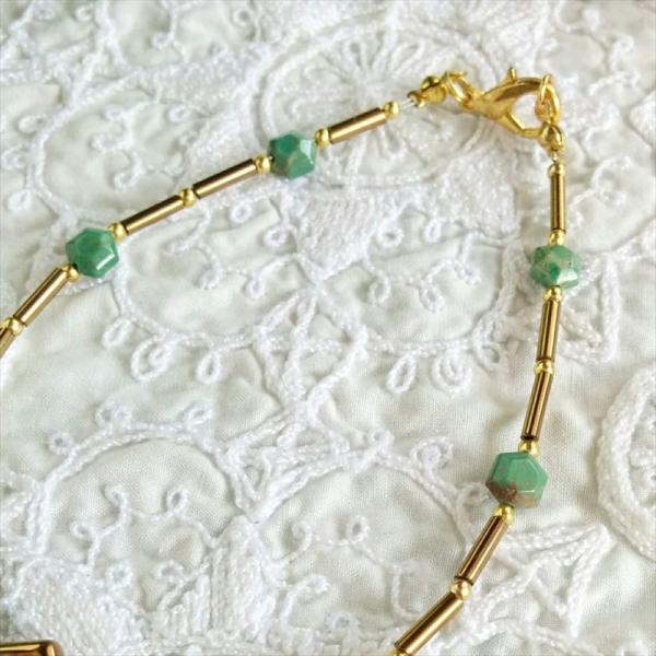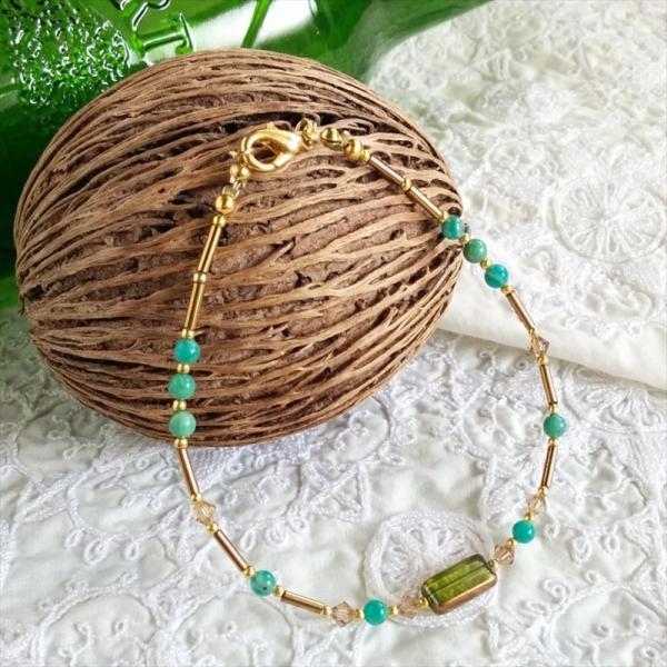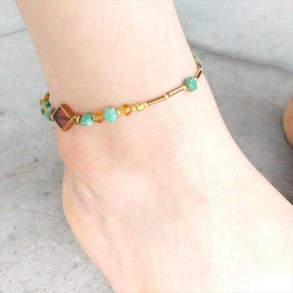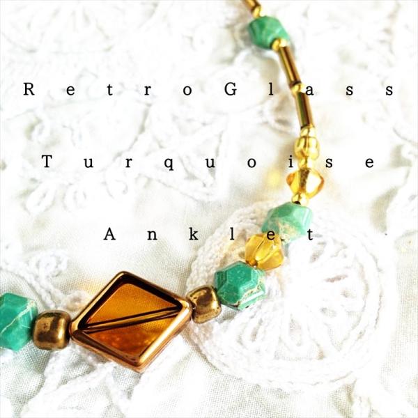 ターコイズ レトロガラス アンクレット realcolorオリジナル ハンドメイド クラフト 天然石 リゾート 海 フェス エスニック レディースアクセサリー