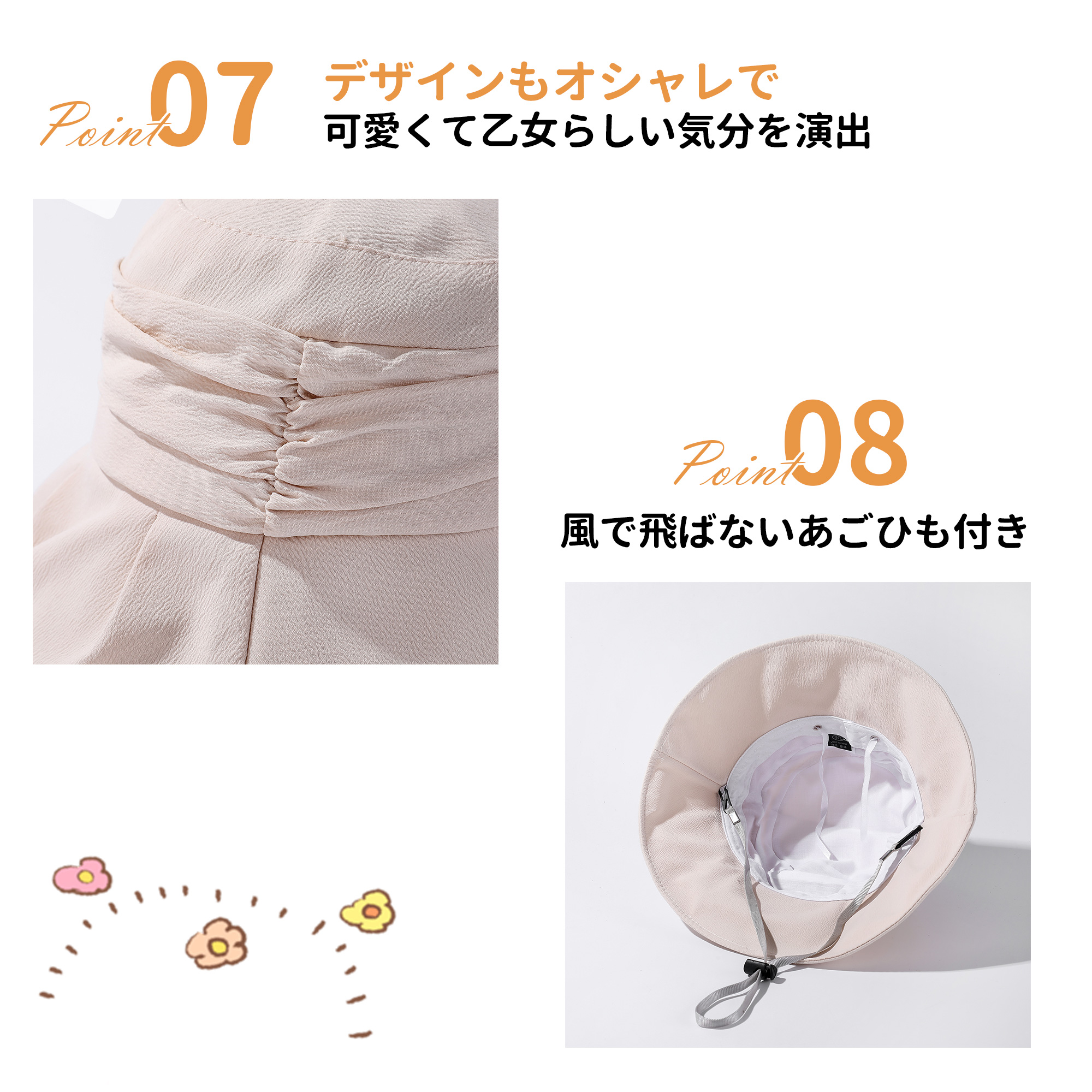 バケットハット 帽子 レディース Realook リアルック バケハ かぶる日傘 あご紐付 小顔効果 洗える 遮光 紫外線対策 キャップ 日よけ【綿靴下2足レビュー特典】