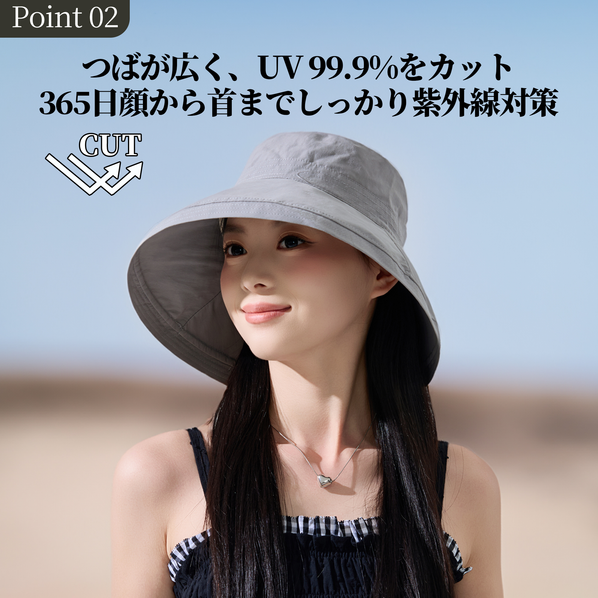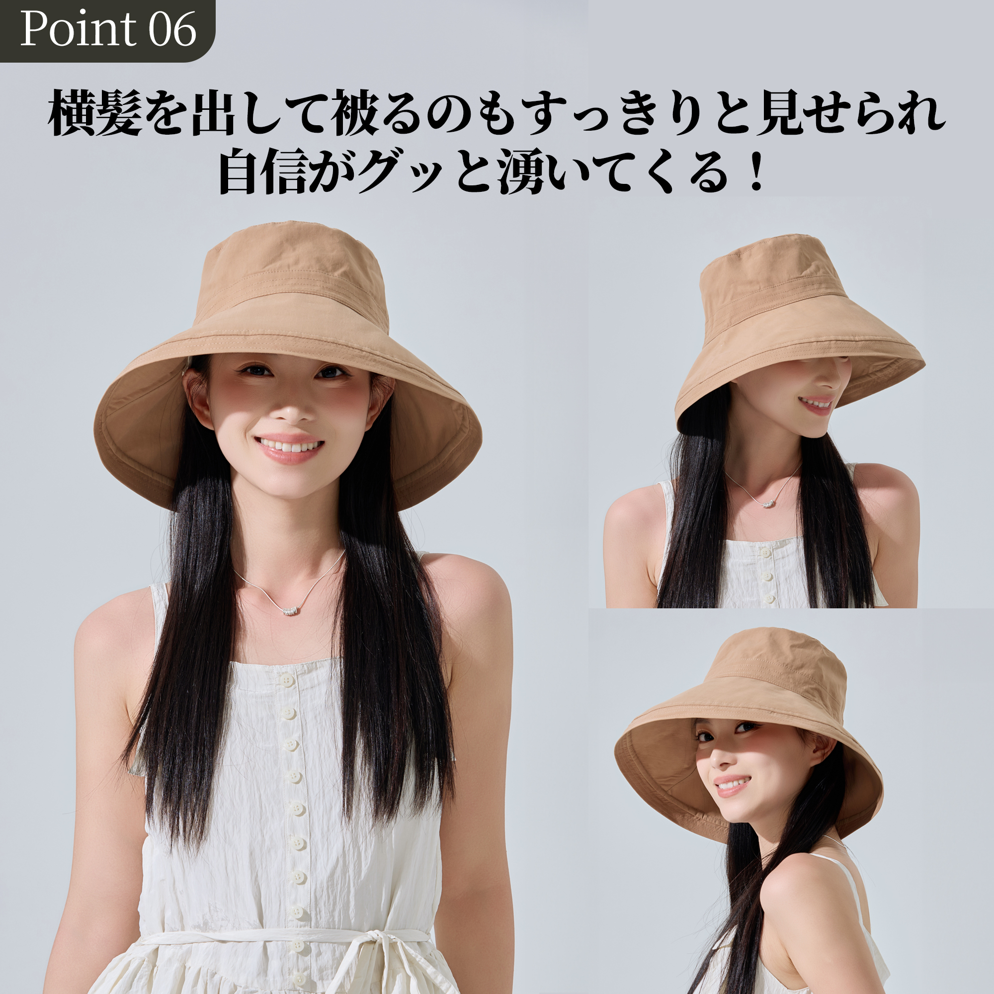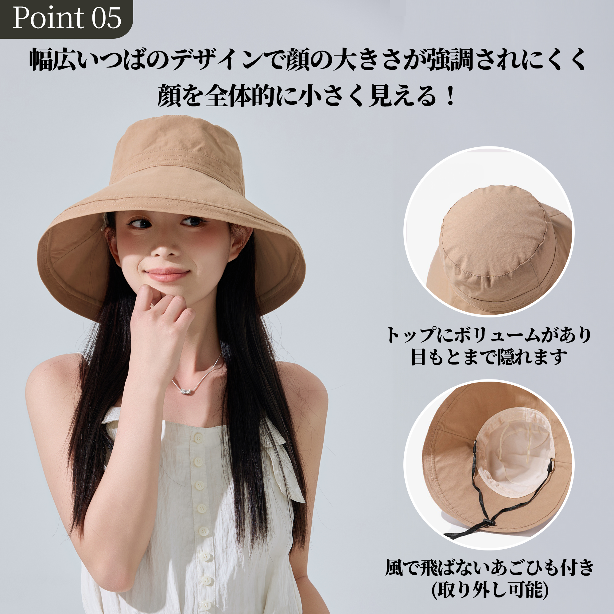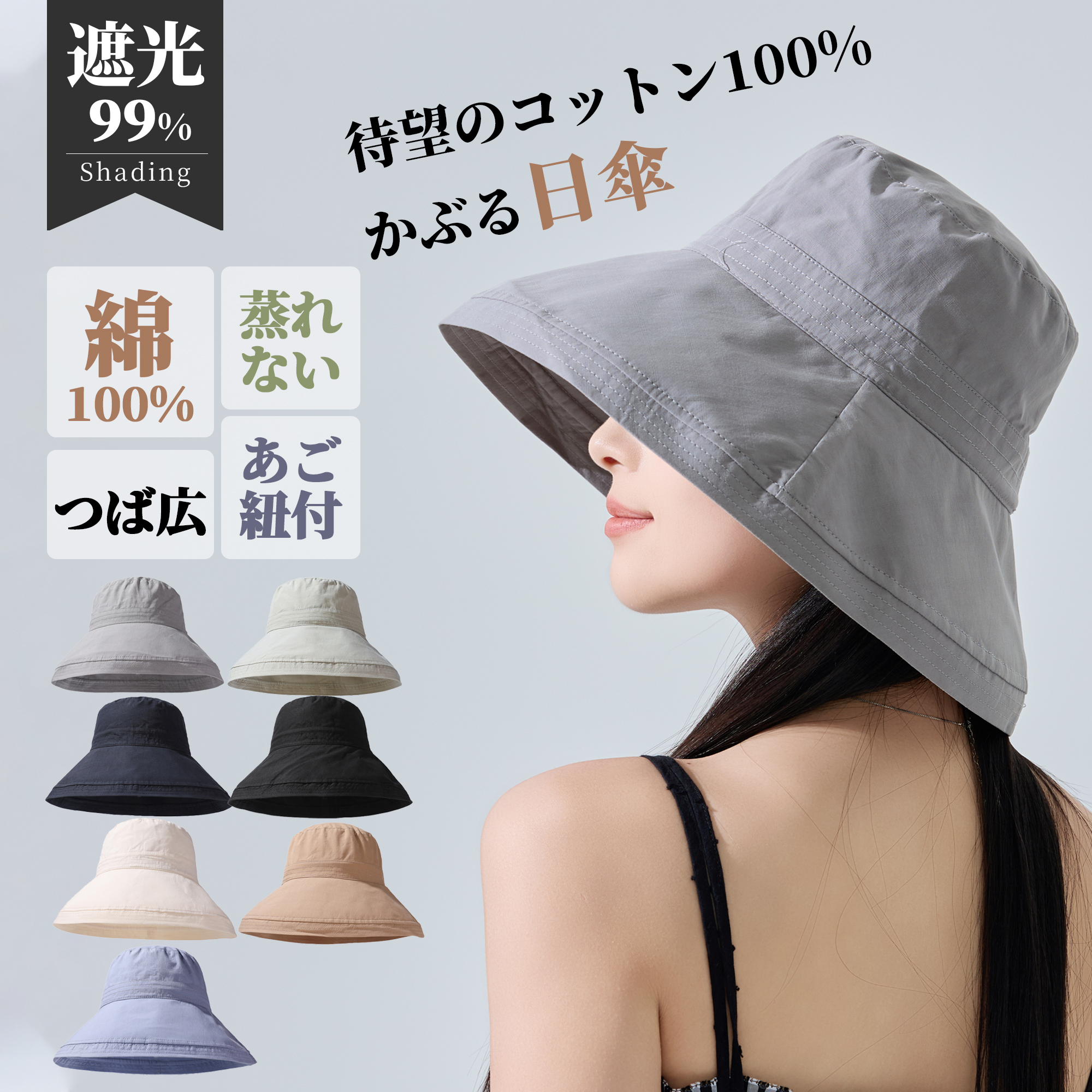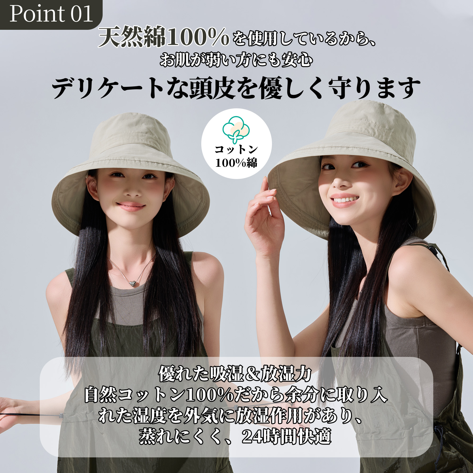 バケットハット 綿100%帽子 Realook 肌に優しい 通気性抜群 頭皮守る レディース Realook バケハ かぶる日傘 つば広 着脱式あご紐付 【綿靴下2足レビュー特典】