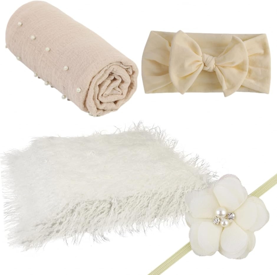 Sweet Plus「撮影用 ブランケット 赤ちゃん 新生児 写真 マット 毛布 ヘアバンド おくるみ カチューシャ ベビーシーツ ニューボーンフォト」ご自宅で手軽にニューボーンフォトなどを撮影するときに便利な撮影小物4点セットです。