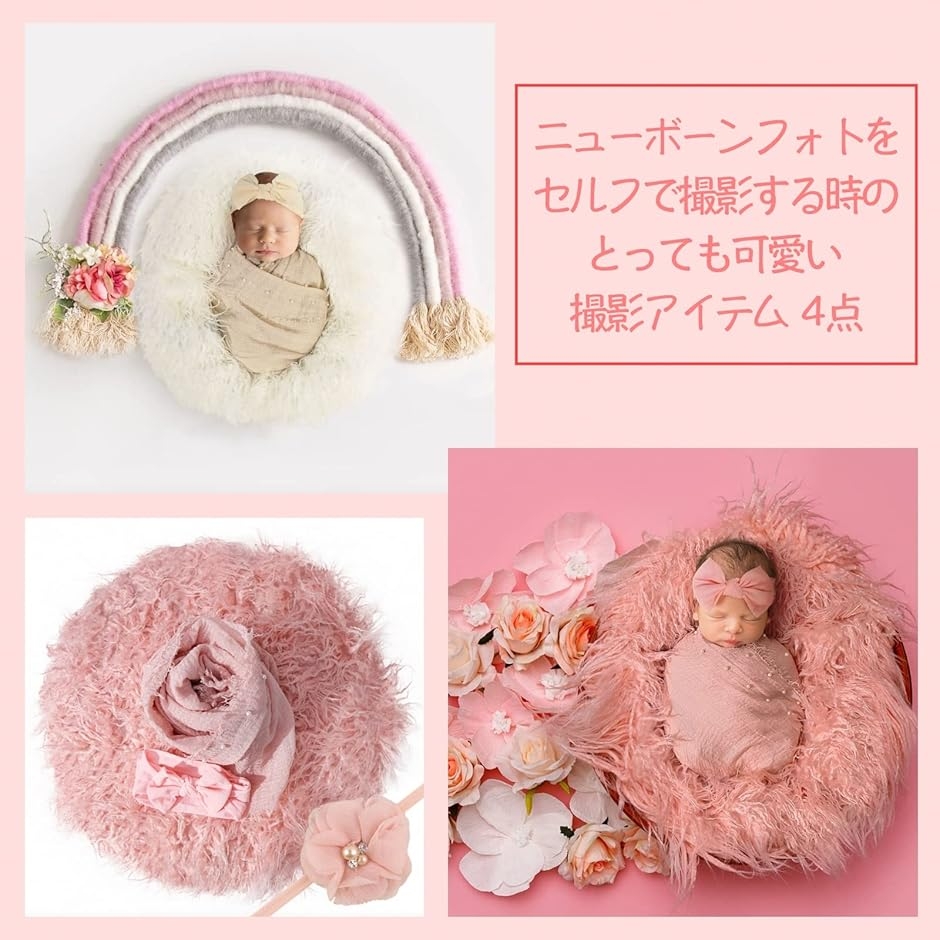 ご自宅でも可愛い写真を撮りたい。。を叶えてくれる撮影小物4点セット(ブランケット・お包み・ヘアバンド・カチューシャ)です。