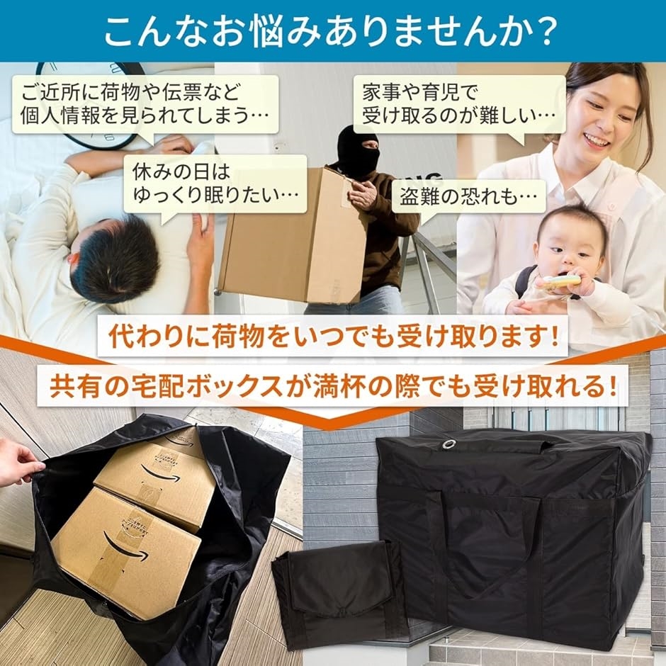 | 商品名 | 大容量 100L宅配ボックス 折りたたみ 置き配ボックス 宅配バッグ 宅配便 ボックス 吊り下げ式 大型 撥水 防水 屋外 南京錠 ステッカー 盗難防止ワイヤー付き ダブルロック ブラック |