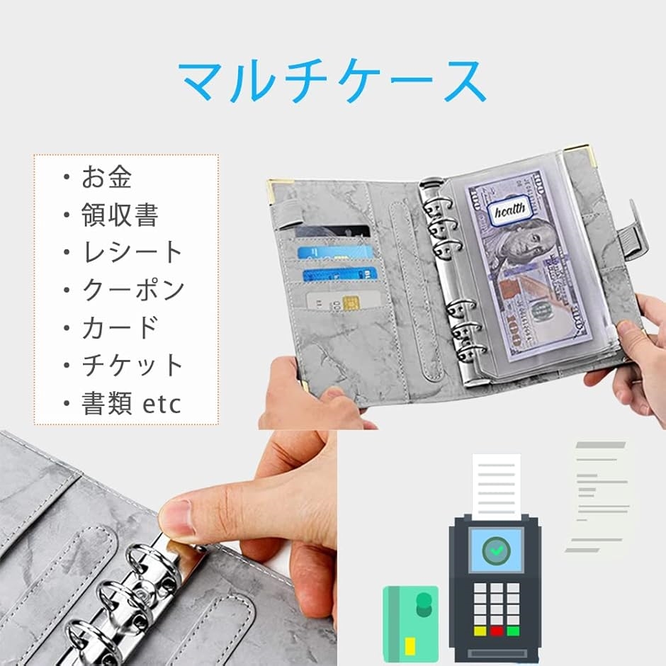 | 商品名 | 家計管理 ポーチ お金管理 ファイル 6穴 家計簿 袋分け 予算管理 バインダー A6 グレー |