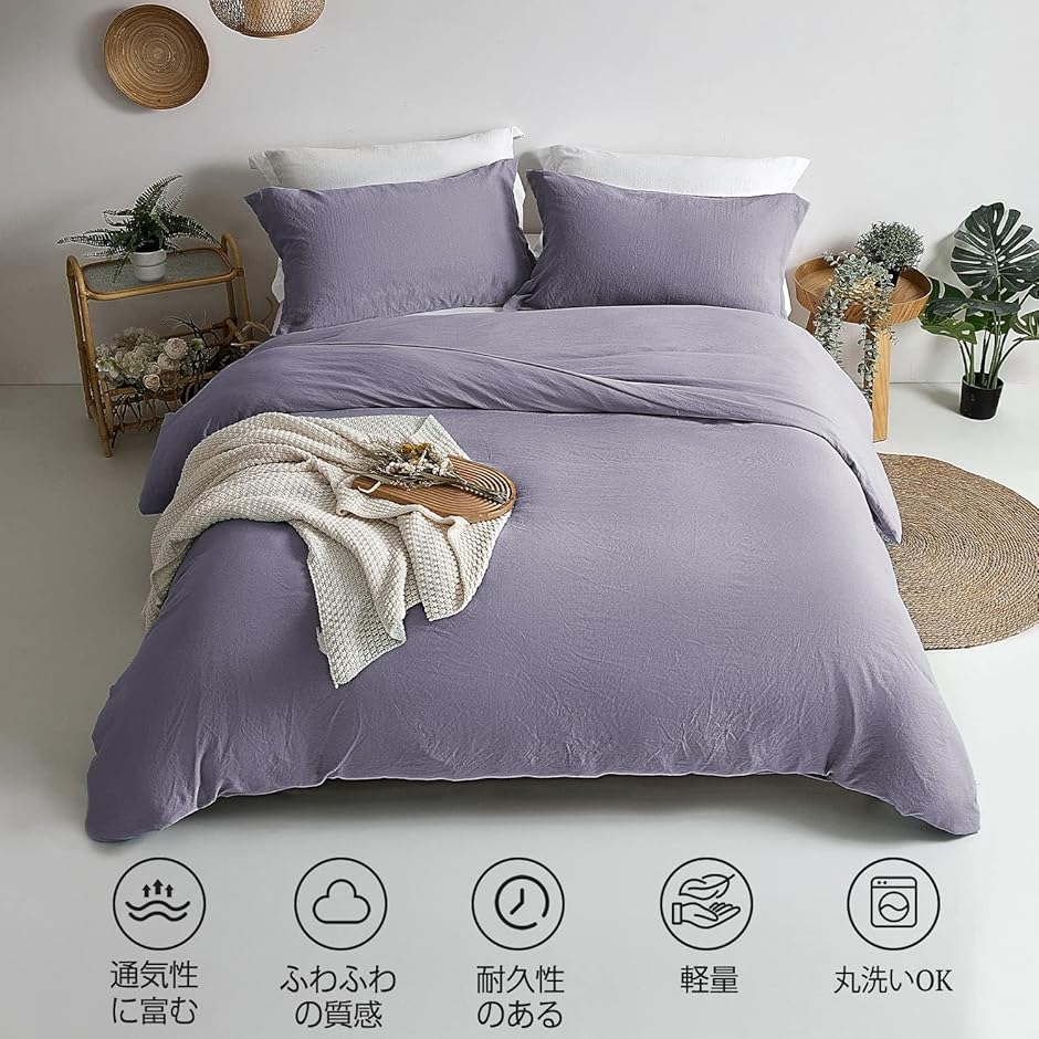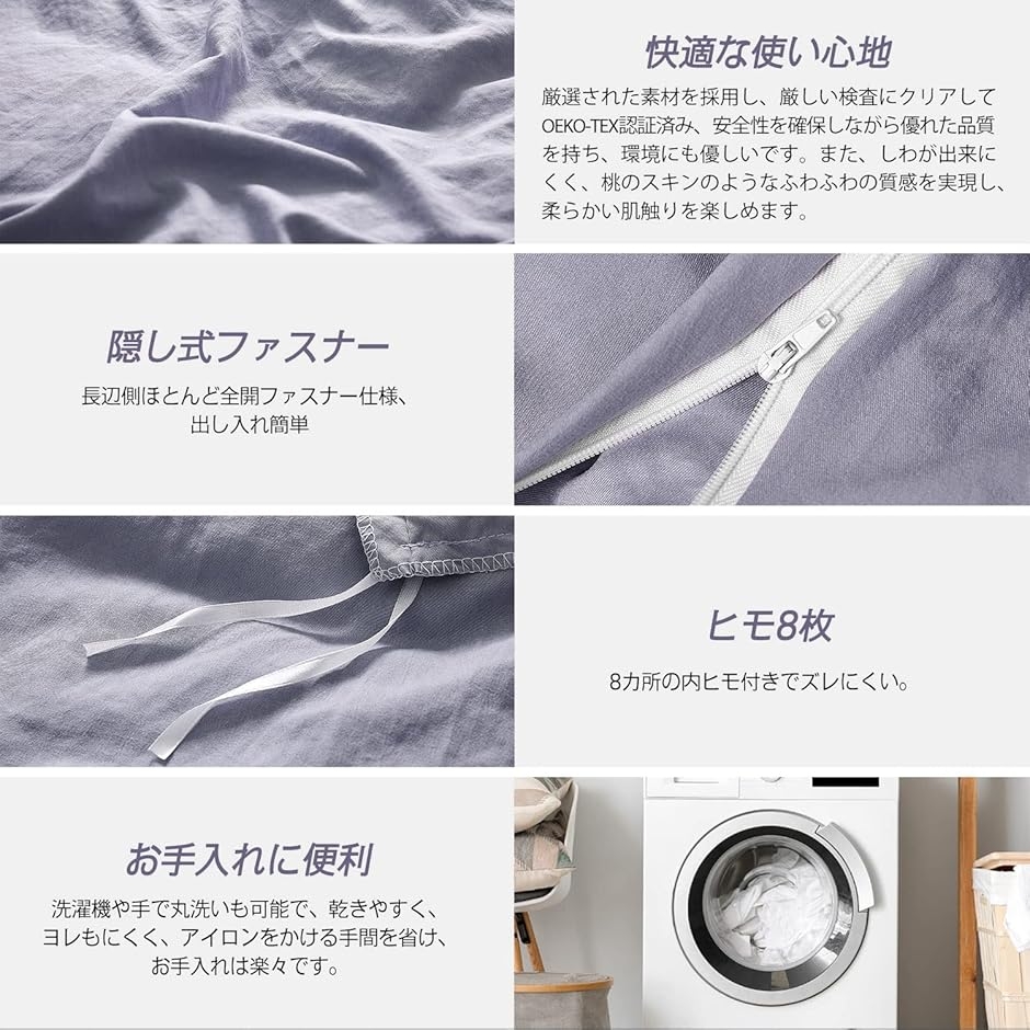 ・「全7色」 白 ┃ グレー ┃ ピンク ┃ むらさき ┃ ブルー ┃ ライトカーキ ┃ セージグリーン・「3サイズ」シングル(150x210cm)┃セミダブル(170x210cm)┃ダブル(190x210cm)・「心を込めた設計」掛ふとんカバー:片側全開仕様とYKKファスナーを採用、スムーズな開閉と出し入れを実現、8カ所の内ヒモ付きでズレになりにくい。